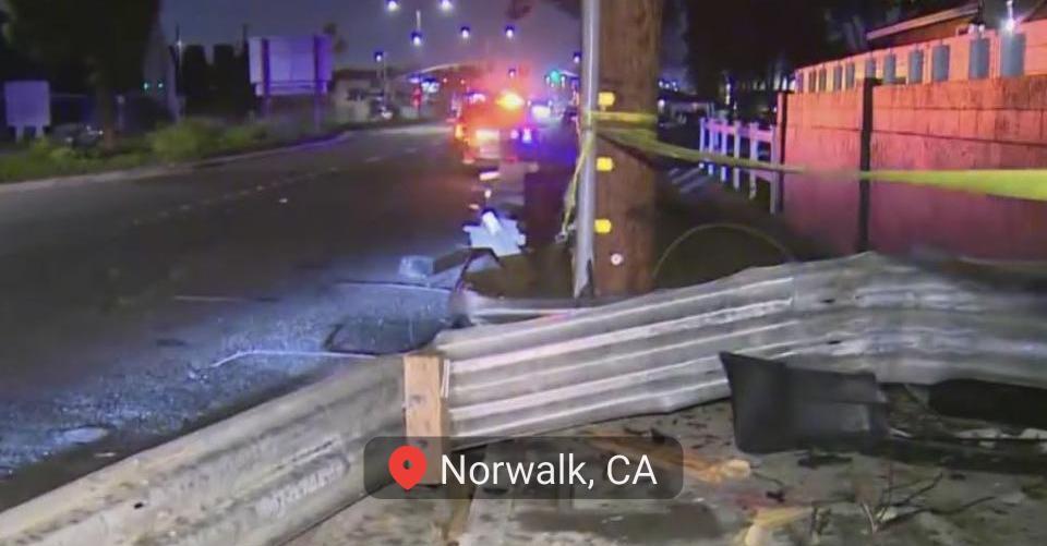 NORWALK (CBSLA) – A driver lost control of a car on the 105 Freeway in Norwalk early Wednesday morning, sending it careening through a brick wall and crashing into a vacant home, knocking out power to nearly 200 Southern California Edison customers in the process. The crash took place just after 2 a.m. at the intersection of Borson Street and Studebaker Road, just off the 105 Freeway. According to California Highway Patrol, the driver lost control of the car while coming off the eastbound 105 Freeway at the Studebaker offramp. The car flew off the offramp and then careened through a brick wall before hitting a vacant home. The crash also brought down some power lines. The two occupants of the car were taken to a hospital, at least one of whom was in critical condition, the Los Angeles County Fire Department reported. One of the victims was a juvenile. The crash also knocked out power to 183 SoCal Edison customers. Power was expected to be restored by 8 a.m. The vacant home suffered significant damage, CHP said. There was no word on whether drugs or alcohol contributed to the crash.